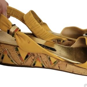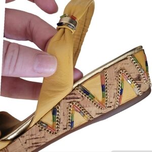 Mario Balogna Mustard Yellow Slingback Cork Beaded Sandals Size 9 Narrow