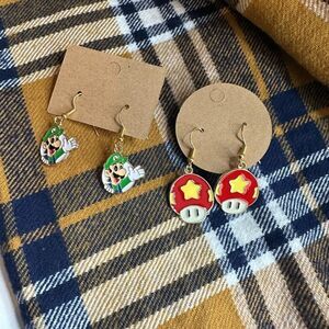 Mario Bros 90’s Nostalgia Throwback Dangle Earrings New Handmade.