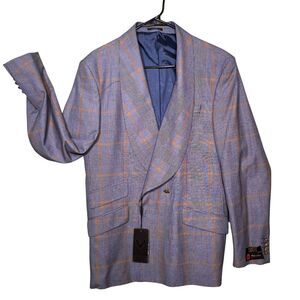Mario Casas Suit Mens 54 Wool Blue Plaid Blazer Pants Set Super 200s Italy