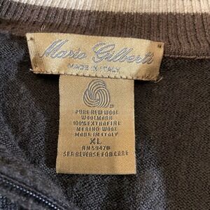 The Mario Gilberti Merino Wool Sweater is a men's XL size mock turtleneck in a brown argyle/diamond pattern with a 1/4 zipper. It has long sleeves and is made of 100% Merino wool, which is breathable and suitable for all seasons. The sweater is knit in a tight-knit style and has a regular fit. It is perfect for travel, casual wear, walking, and other activities. The garment care is hand wash only. This sweater is modern in theme and made in Italy.