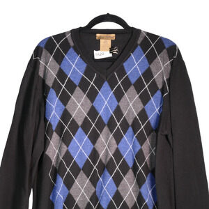 Mario Gilberti Sweater Mens Large Black Blue Argyle 100% Merino Wool Italy