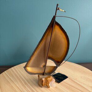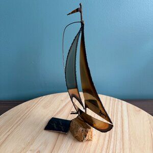Mario Jason Originals Brass Sailboat Sculpture On Stone Base w Tags