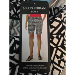 Mario Serrani Italy Black White Comfort Stretch Tummy Control Shorts 8 NWT Approximate Measurements (Flat) Inseam 9" Waist 16" Rise 9.5" Bin 7950