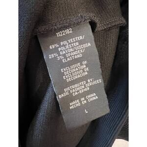 The Mario Serrani Italy Size LG Black Short Sleeve Dress is a classic and versatile piece perfect for casual occasions. Made from a knit fabric with ribbed detailing, this knee-length A-Line dress features a pullover closure and crochet accents. The stretch material ensures a comfortable fit, while the solid black color and cap sleeves add a timeless touch. Machine washable and designed in Italy, this dress is ideal for wearing in summer, fall, or spring for a stylish and effortless look.