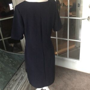 Mario Serrani small ribbed textured dress. Fitted slip on polyester, Rayon and spandex. Deep navy in color. Very basic. Great condition no snags or pilling. Size Medium. P2P 19”. Length 39”. Sleeves 12”.