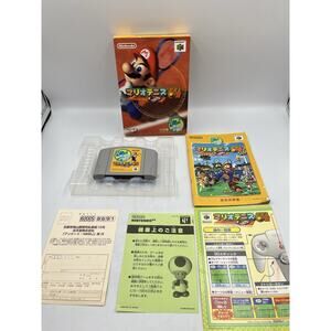 The product is a complete set of Mario Tennis 64 for the Nintendo 64 console, manufactured in Japan. This set includes the game cartridge, manual, and all necessary components for a complete gaming experience. The game is designed for NTSC-J region consoles, ensuring compatibility and authenticity. Perfect for collectors or fans of classic video games, this set offers a nostalgic trip back to the golden age of gaming on the N64 platform.