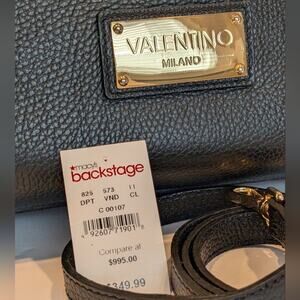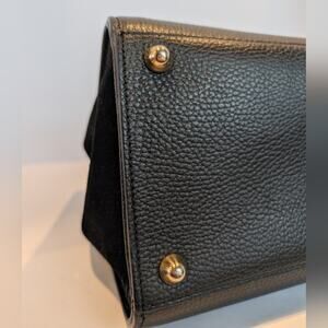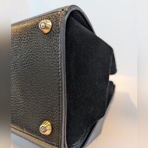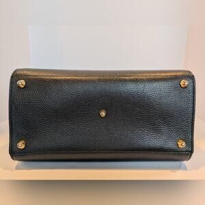 Elegant black satchel by Mario Valentino. Features gold-tone hardware. Includes detachable strap.