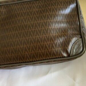 EUC Mario Valentino Clutch Brown PVC Bag. Please see the pictures for a few areas along the piping with wear. This clutch has plenty of room for all the things you need to carry! Please comment if there are any questions.