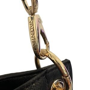Crafted in premium pebbled faux leather with a structured silhouette, this spacious handbag easily transitions from work to weekends. The elegant exterior features gold-tone hardware, an embossed Valentino logo strap.
