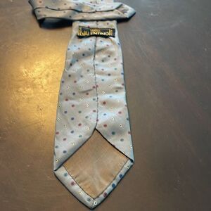 Mario Valentino Tie. 100% Silk. Made in Italy. Skinny Tie. Vintage Tie. Dots. Gray, blue, red, white