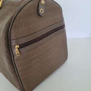 Mario Valentino Vintage Duffle Boston Tote Bag Handbag Large Travel Brown Logo