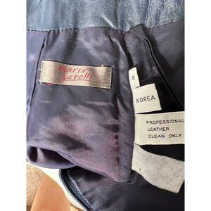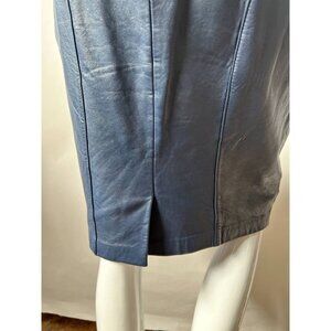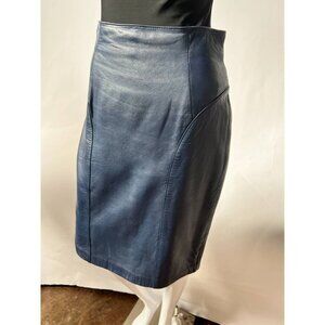 Mario Zarelli Womens Leather Pencil Skirt Blue Knee Length Lined 8