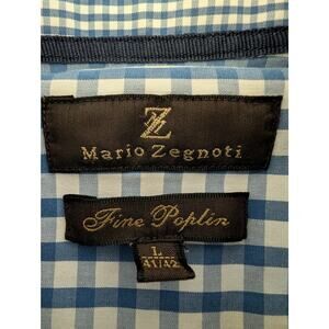 Mario Zegnoti Poplin Shirt Men L* Check Button Down Long Sleeve Contrast Trim