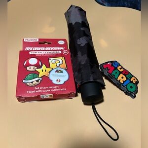 Includes Super Mario coasters and umbrella. Only one coaster was used out of the entire set. The umbrella was never used. Please see pics for imperfections.