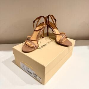 Marion Parke Lillian Nappa Leather Stilettos Strappy Sandals Buff Women's US 7