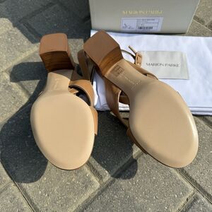 Marion Parke Maren Block Heel Napa Caramel White Stitching NIB $595 Size US 8.5
