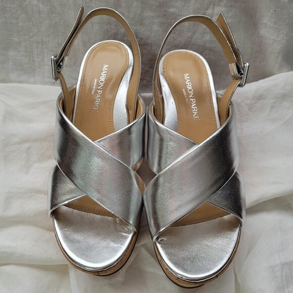 Marion Parke Metallic Slingback Platform Wedge Sandal