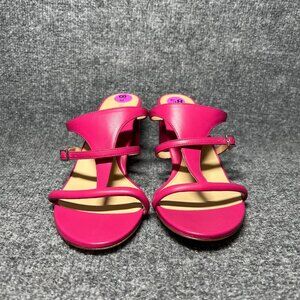 Marion Parke Pink Leather Sandals Heeled Slide Size 39.5 US 8.5 NEW