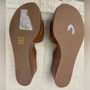 Brand with care instructions and a thank you note from the Designer. This shoe incorporates the Marion Parke Triple I" Insole, Invisible Intelligent Insole. Informed and designed by a foot and ankle surgeon using leading-edge material. The shoe sculpts to the natural shape of the foot, and become more comfortable with every wear. Silver-tone grommets at strap, Molded arch, platform profile, open toe, rubber sole. made in Italy. Heel 2.5"