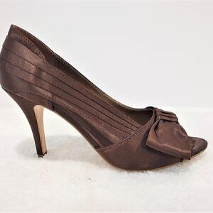 Maripe "Jezebel" Brown Pleated Fabric Heels w/ Bow-Bridal / Formal - Size 6.5