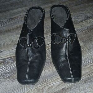 Maripe black buckle cinches mules Sz 8.5 EUC