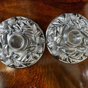 Mariposa candlestick holders with “Sienna” colored candlesticks. This item is a set of 2. The candlesticks have never been used. Mild fading. Great addition to the Thanksgiving table. Smoke free home. Excellent condition. Acorn and oak leaf pattern