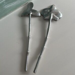 Elegant silver serving utensils with floral design. Perfect for special or everyday occasions.