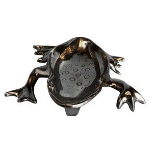 Mariposa Mexico Frog Dish Recycled Aluminum Silver 8x8x2 Inches