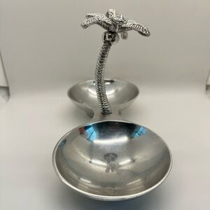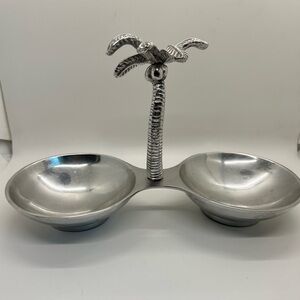 Mariposa Double Palm Tree Nut, Candy, or Trinket Double Bowl Cast Aluminum