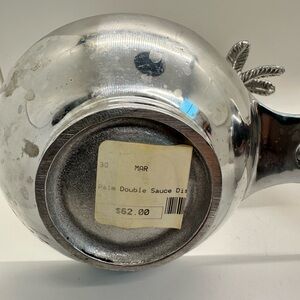 Enhance your dining experience with this elegant silver double bowl featuring a charming palm tree design. Perfect for serving snacks or condiments in style.