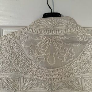 Marisa Baratelli Cream Embellished Open-Front Blazer 100% Thai Silk