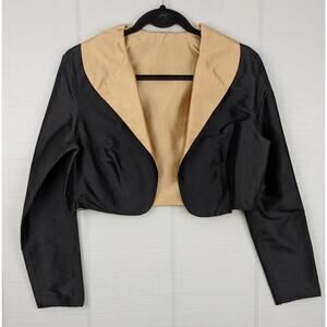 Marisa Baratelli Jacket Womens 8 Black Gold Thai Silk Cropped Bolero Formal Elegant