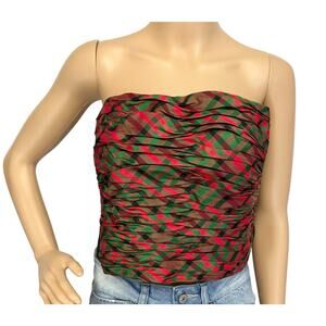 Marisa Baratelli Pure Silk Plaid Bustier Top Holiday Christmas Corset One Size
