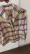 Marisa Baratelli silk plaid top is a size 6. Front button closure, sleeves come above wrist. Underarm to underarm approximately 18 1/2 inches. Shoulder to bottom hem approximately 21 1/2 inches. This garment can be worn as a blazer or a top.