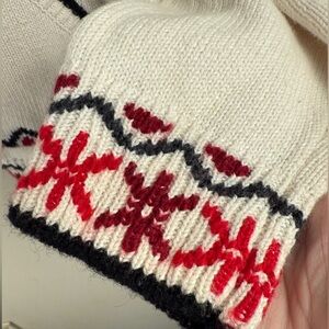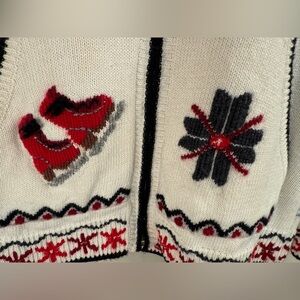 This AMAZIING detailed winter cardigan is in overall great condition. There are a couple of small faint stains and the pull tag is missing on the zipper.