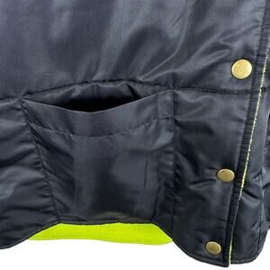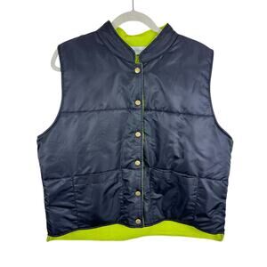 Marisa Christina Black Nylon Chartreuse Yellow Fleece Reversible Snap Up Vest XL