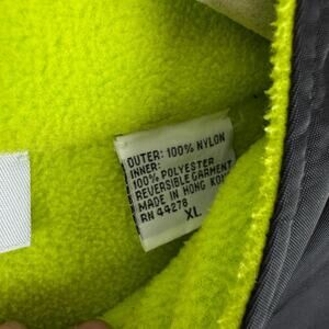 Excellent preowned condition. Black Nylon & Chartreuse Yellow Fleece Reversible Snap Up Vest. Black side has open pockets on lower front, yellow side does not have pockets. All tags are tacked in corners & can easily be removed for wear. Black side is nylon/chartreuse side is polyester material. Approx. measurements: Shoulder to hem 24", pit to pit 23". Size XL.