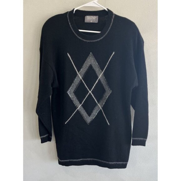 Marisa Christina Crewneck sweater black XL Long Sleeve Lambswool Rabbit Fur Gray