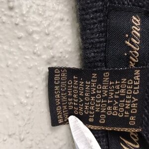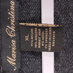 Marisa Christina Women's Dark Grey/Light Black Angora Wool Blend V-Neck Long Sleeve Medium Weight Waist Length Pullover Sweater. 75% Nylon, 16% Angora Rabbit Hair, 8% Wool, 1% Spandex. Rolled Cuff/Hem. Measurements approx. Flat Lay. Pit to Pit: 21, Sleeves: 26, Length: 25". Size XL Color May Vary Due To Lighting.