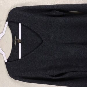 Marisa Christina Dark Grey Angora Wool Blend V-Neck Long Sleeve Pullover Sweater