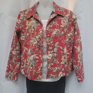 Marisa Christina Floral Trucker Jacket Classic Style Unlined Button Pockets XL