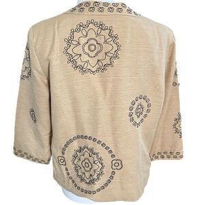 Marisa Christina Jacket Size L Tan Silk Crop Open Front Embroidered Jacket
