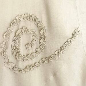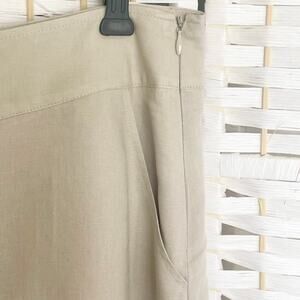 Marisa Christina Linen Blend A-Line Midi Skirt Size 10 Ruffle Applique Swirls Lagenlook. Zipper in side. 55% linen, 45% cotton. Lined. Side pockets. Khaki color. In excellent condition.