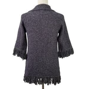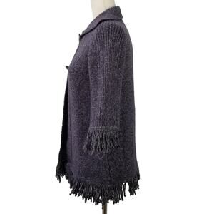 Marisa Christina Purple Wool Blend 2 Button Cardigan Fringe Hem Sweater Size S