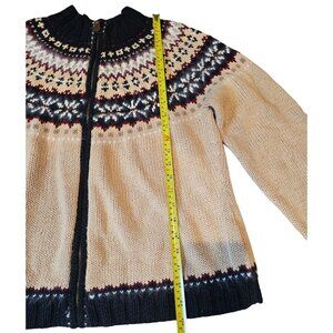 Marisa Christina Sweater Hand Knit Fair Isle Tan Black Ramie Cotton Zip Up