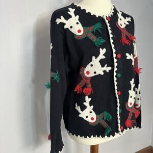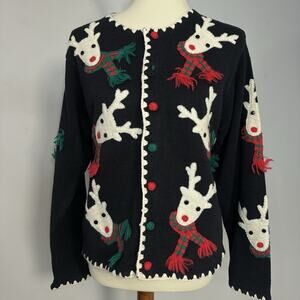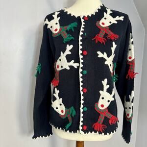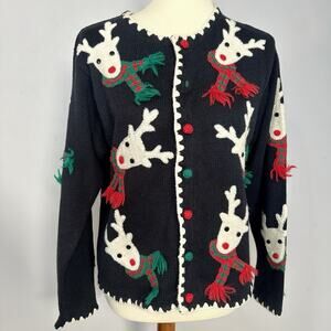 Marisa Christina Y2K 2000 Christmas Collection Cardigan Sweater Reindeer Knit