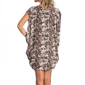 Marisa Kenson Brown Snakeskin Open Sleeve Draping Hi-Lo Hem Dress - size XS NWT