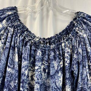 Marisa Kenson Off Shoulder Bell Sleeve Top Blue/White Size Small New