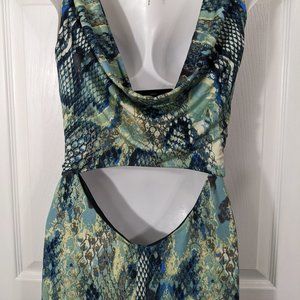 Marisa Kenson Teal Black Snakeskin Print Sleeveless Cut-Out Maxi Dress - XS NWT