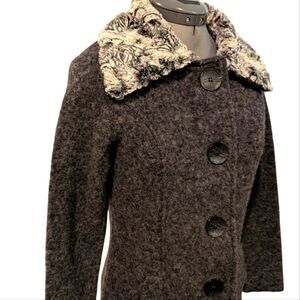 Marisol women's gray wool made in Italy wool faux fur coat size s